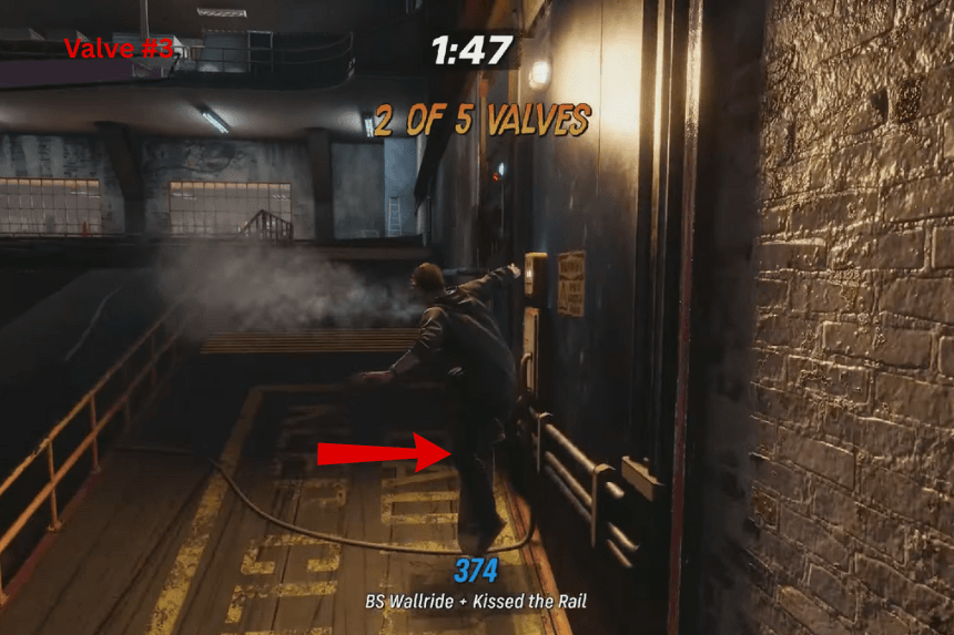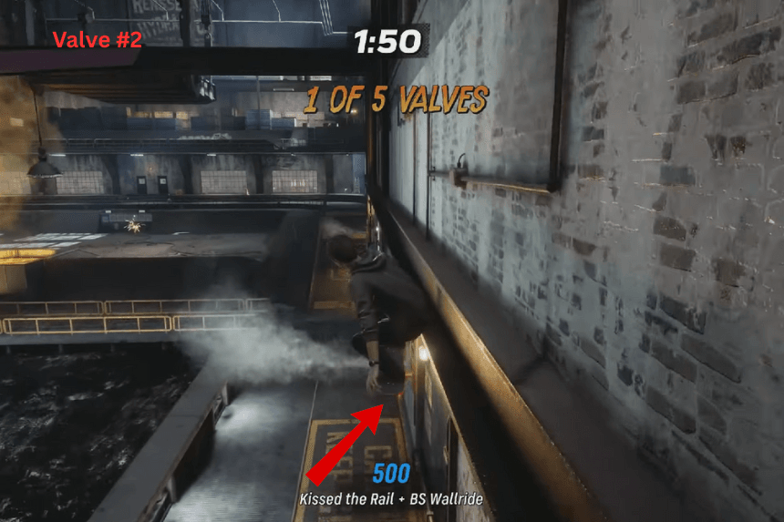 - Valvola n. 5: per l’ultima, pattina oltre l’half-pipe e troverai di nuovo la valvola n. 5 sul lato sinistro.