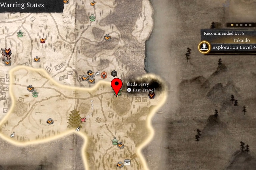 Questa serratura del samurai si trova su un corpo in un’area pattugliata da un Mezuki. Si trova nell’angolo occidentale di Tokaido, a sud-ovest del santuario del traghetto Ikeda. Nasconditi dietro il Mezuki attorno ai bordi dell’area e saccheggia il corpo.