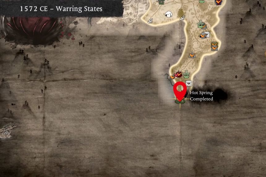 La sorgente termale di Tokaido si trova sul lato meridionale di Tokaido, appena oltre la base nemica. Quando lo raggiungi, interagisci con la sorgente termale per ottenere 2 lacrime Yokai come ricompensa.