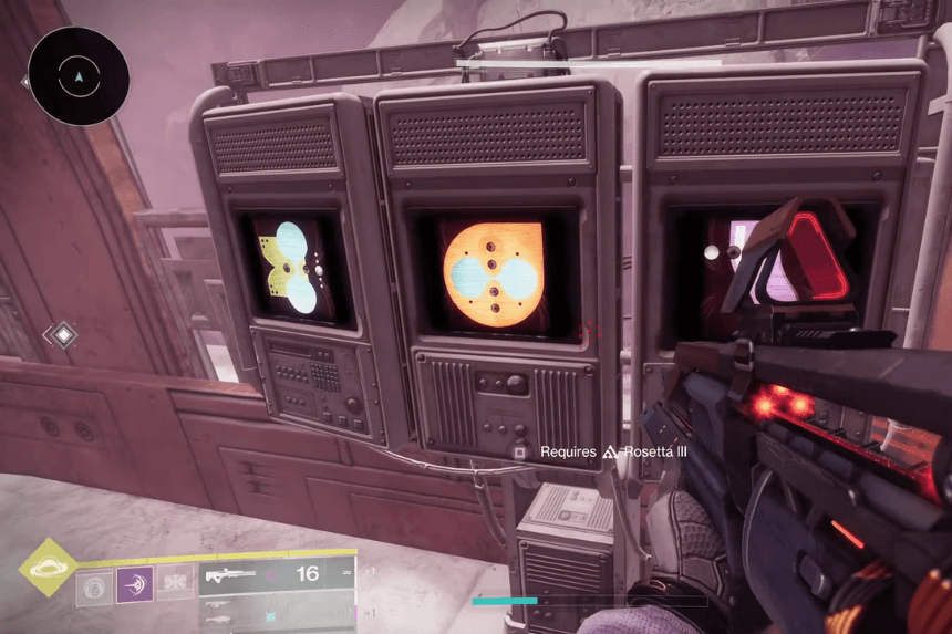 Controlla a destra del treno e vedrai un portale Matterspark. Usa la tua abilità Matterspark per saltare in quel portale e seguire attentamente il percorso. Continua finché non raggiungi un’area aperta piena di nemici. Sul lato sinistro di questa zona c’è una piccola stanza. All’interno incontrerai un altro Minotauro Sentinella Rosetta Vex e talvolta anche un Brigantino caduto. Eliminali e poi attiva il modulo di comando Aioniano sul lato sinistro della stanza per completare questo passaggio di triangolazione.