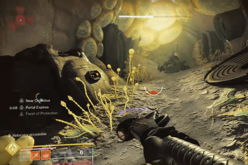 Una volta terminato il combattimento, cerca una piccola struttura vex all’estrema sinistra della stanza. Dietro troverai il terminale per il modulo di comando. Interagisci con esso per attivare il passaggio successivo della tua missione e continuare ad avanzare verso il cannone portatile esotico a punta gravitonica.