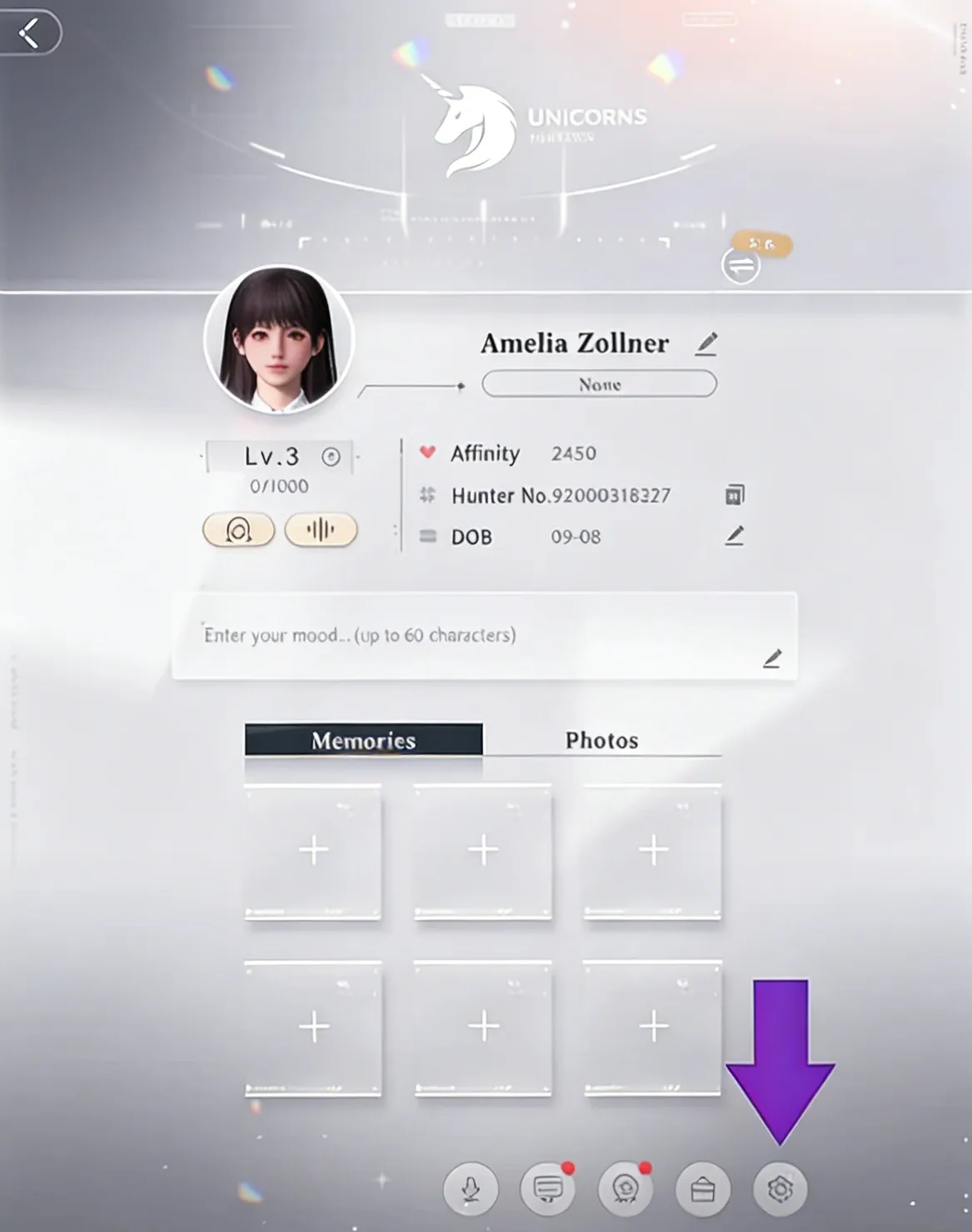 1. Apri il profilo: dalla schermata principale (Stanza del cacciatore), tocca l’icona del tuo profilo nell’angolo in alto a sinistra.