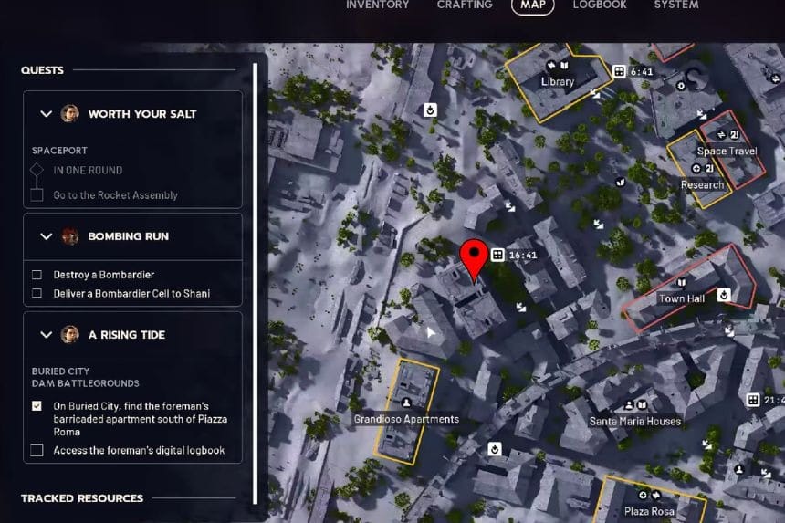 - La ricerca inizia all’interno di un appartamento nascosto a Buried City, dove devi interagire con un oggetto.