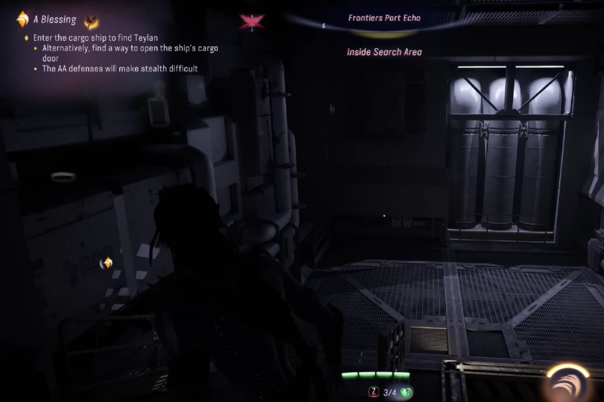 Per trovare Teylan, devi entrare nella nave mercantile. Sotto c’è un tunnel di manutenzione, ma le guardie sono appostate nelle vicinanze. Una volta che il percorso è libero, seguire il segnavia giallo fino all’ingresso del tunnel. Dovrai arrampicarti e scalare spazi ristretti per spostarti nelle aree di manutenzione della nave.