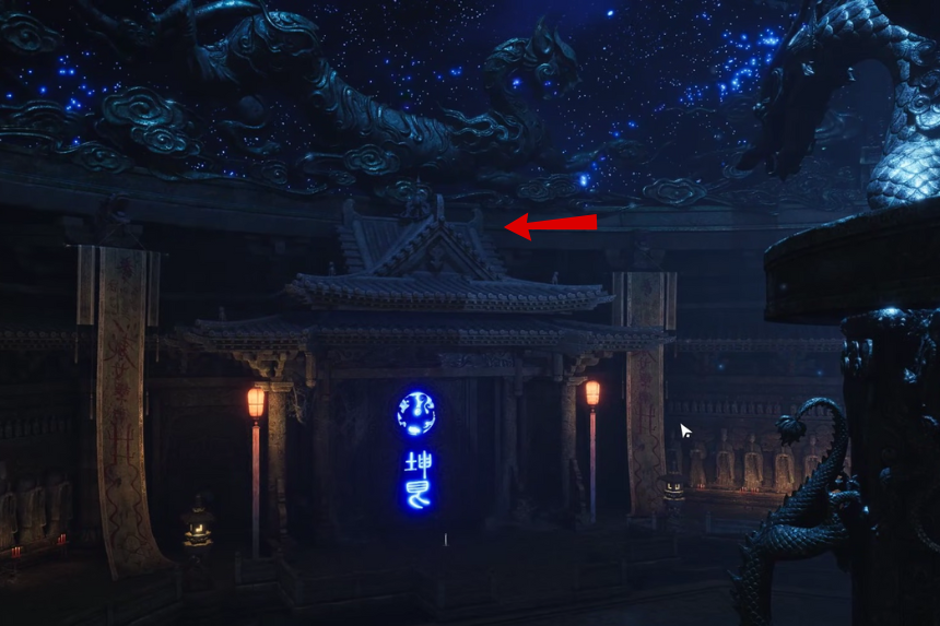 Vicino alle scale che hai utilizzato per salire sulla terrazza, troverai la piattaforma North Star Bagua. Vai avanti e interagisci con esso. Successivamente, gira la statua del Drago Azzurro in modo che sia rivolta a est. Una volta posizionata la statua, sali sulla lastra yin-yang proprio sotto di essa. Questo attiverà il meccanismo e manderà giù l’ascensore.