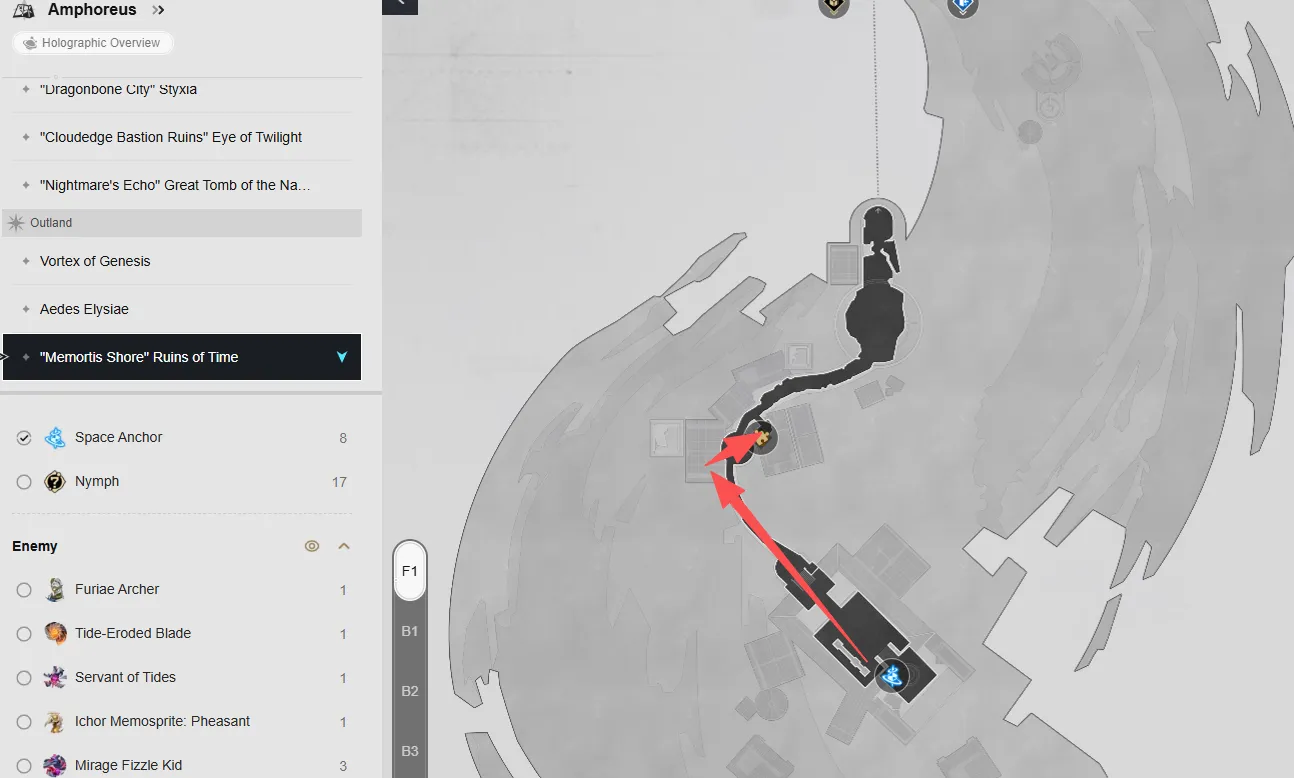 Teletrasportatevi all’ancora spaziale del cortile delle rovine in F1, poi andate avanti fino a raggiungere un sentiero sulla destra.