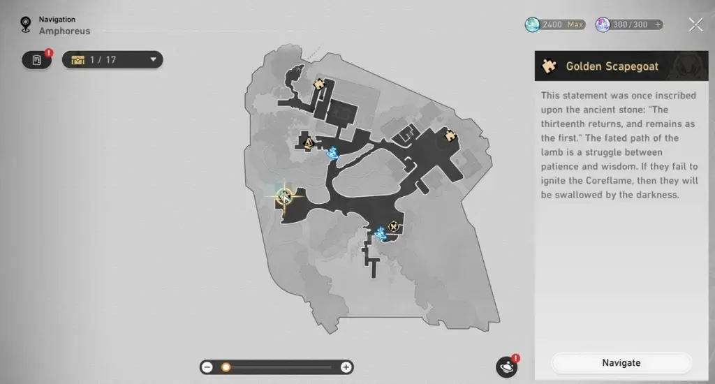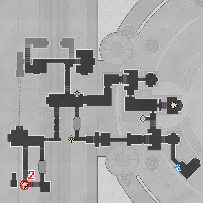 Il secondo puzzle del Capro Espiatorio d’Oro in Aedes Elysiae si trova a nord-ovest dell’Ancora Spaziale del Cortile del Sacramento. Per arrivarci, utilizza l’ancora spaziale del Sacrament Courtyard, quindi viaggia verso nord, ovest e ancora una volta nord. Quando arrivi al puzzle del capro espiatorio d’oro, segui questi passaggi per risolverlo:
