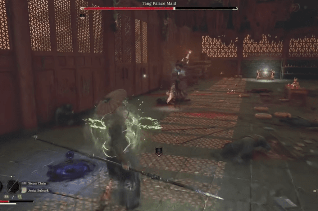 La cameriera del palazzo Tang è più un boss tutorial che una seria minaccia. Non è molto forte o veloce e durante il combattimento potresti persino vedere alcuni tutorial pop-up che spiegano alcuni dei meccanismi principali del gioco.
