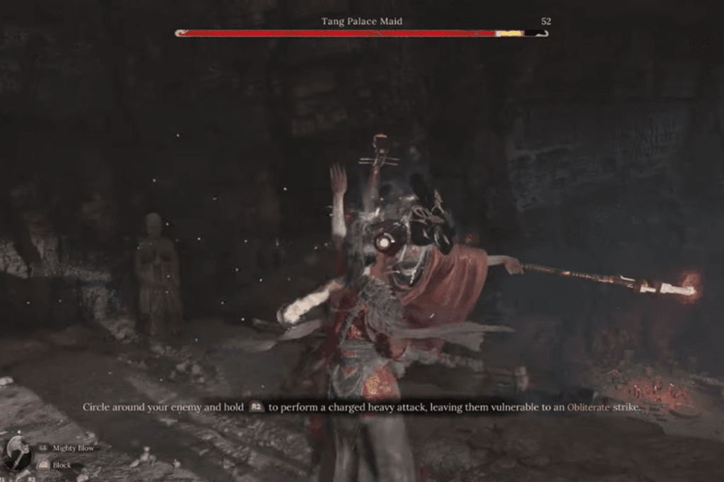 Questa lotta contro il boss non è troppo dura, quindi non stressarti troppo. La cameriera del palazzo Tang usa solo due attacchi principali e sono abbastanza facili da leggere dopo averli visti un paio di volte. È anche piuttosto lenta, il che ti dà molte possibilità di schivarla e colpire da dietro; è lì che è più vulnerabile.