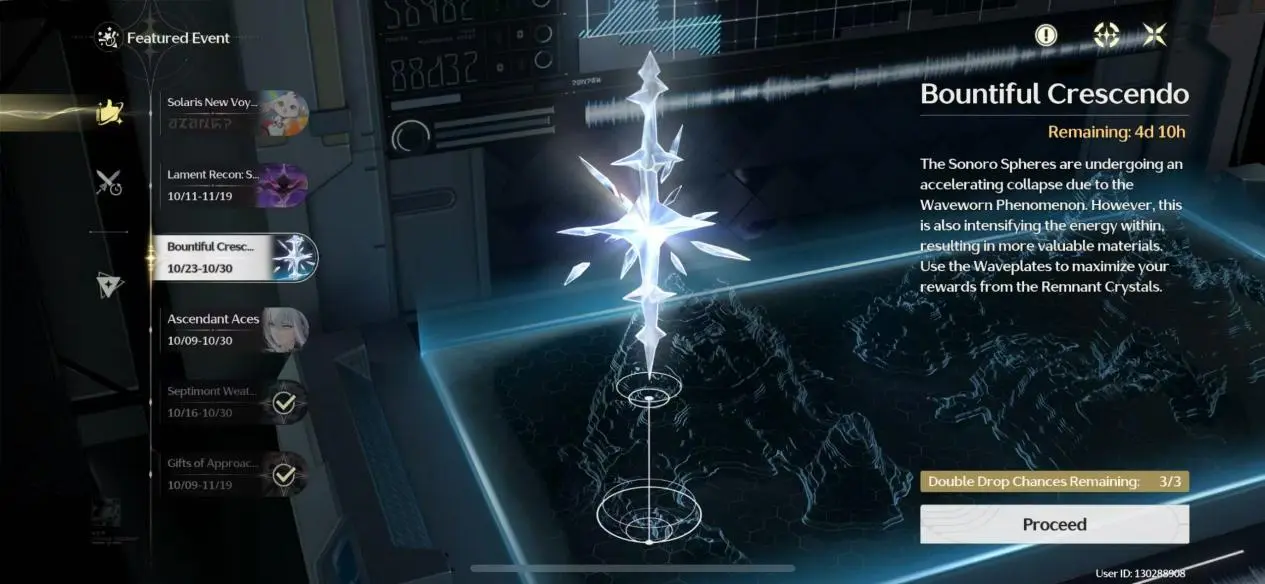 – Durante (Bountiful Crescendo), puoi richiedere ricompense doppie 3 volte al giorno e le rimanenti richieste di ricompense doppie possono essere visualizzate nella pagina dell’evento (Bountiful Crescendo).
